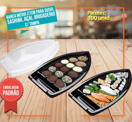 Barca (Boat Médio) 26cm para sushi, sashimi, açai, brigadeiro (500ML) - C/ TAMPA - 100 unds