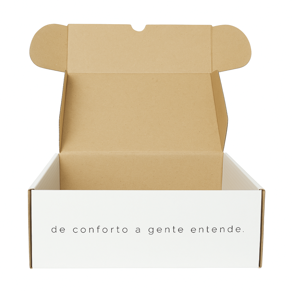 Ideal para e-commerce e envios postais, esta embalagem é perfeita para proteger produtos durante o transporte, seja por correios ou transportadoras. Situada no contexto de um e-commerce em crescimento, ela atende às demandas de envios seguros e eficientes.