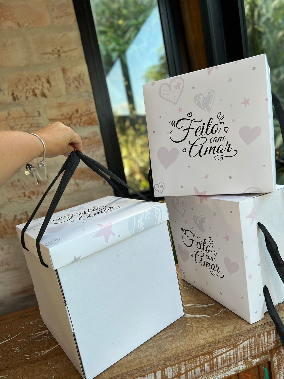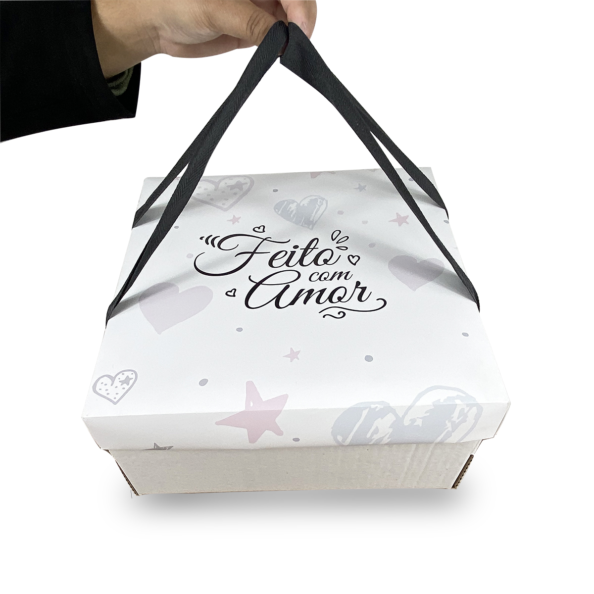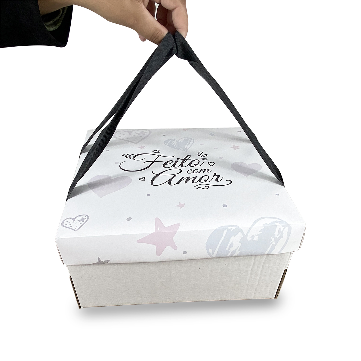 Caixa Para Festa na Caixa ou Bolo (27 x 27 x 12 cm) c/ Alça Feito Com Amor - 50 Unidades LANÇAMENTO