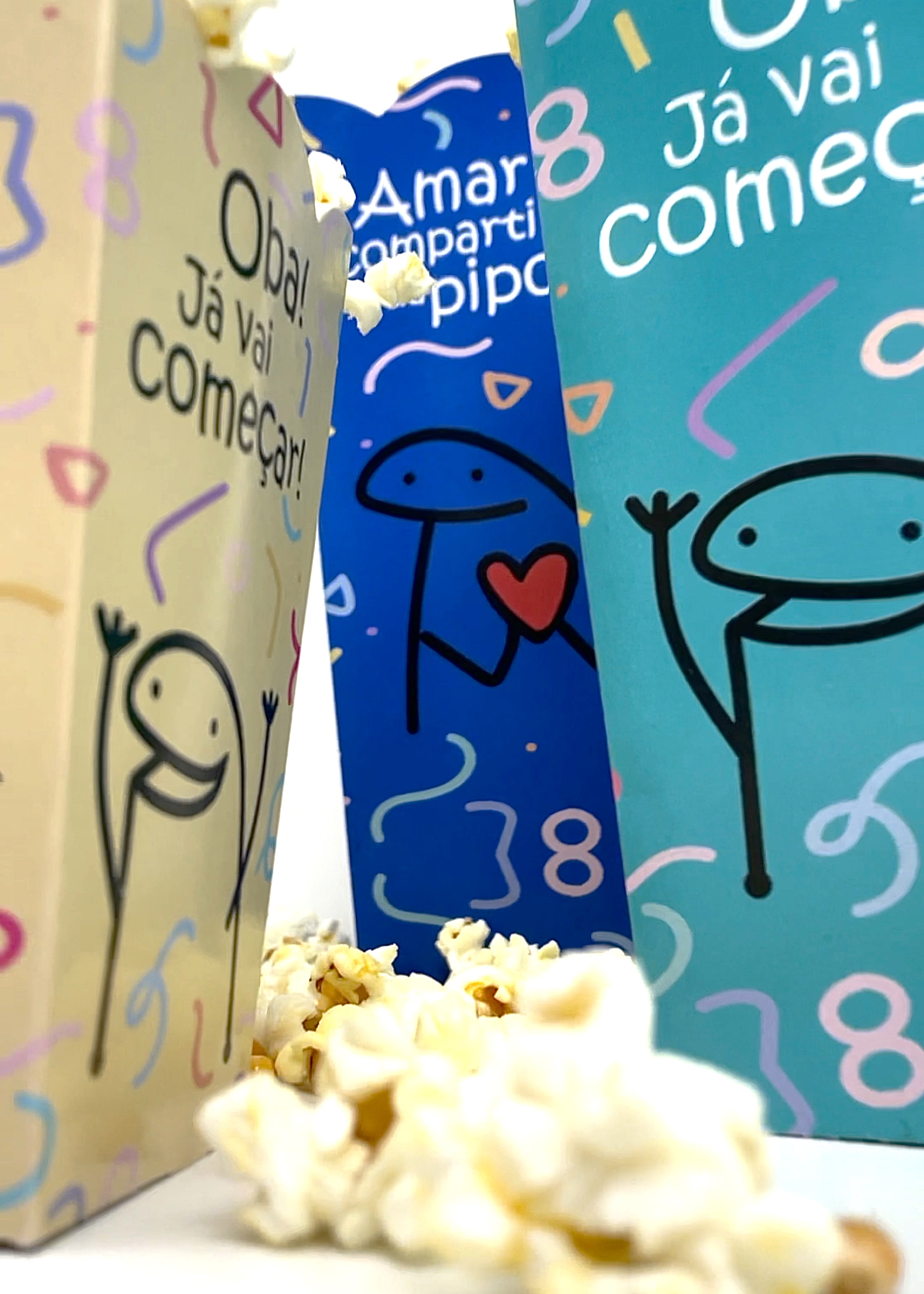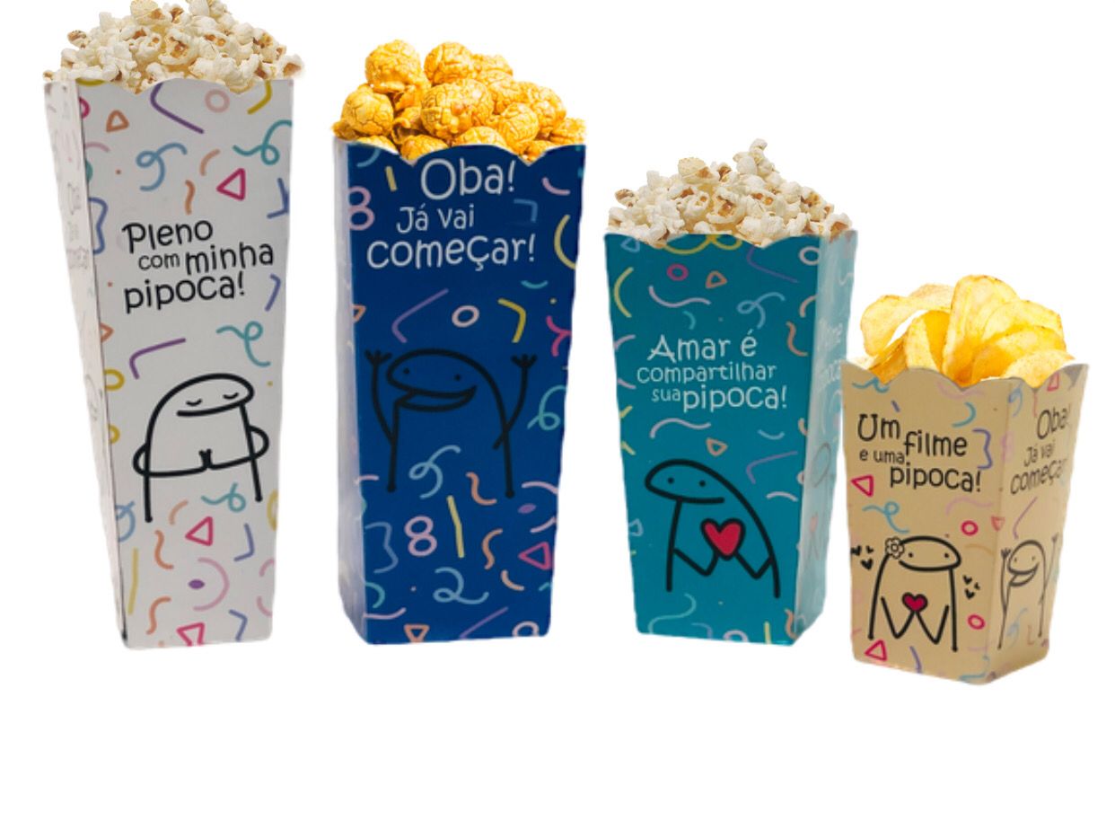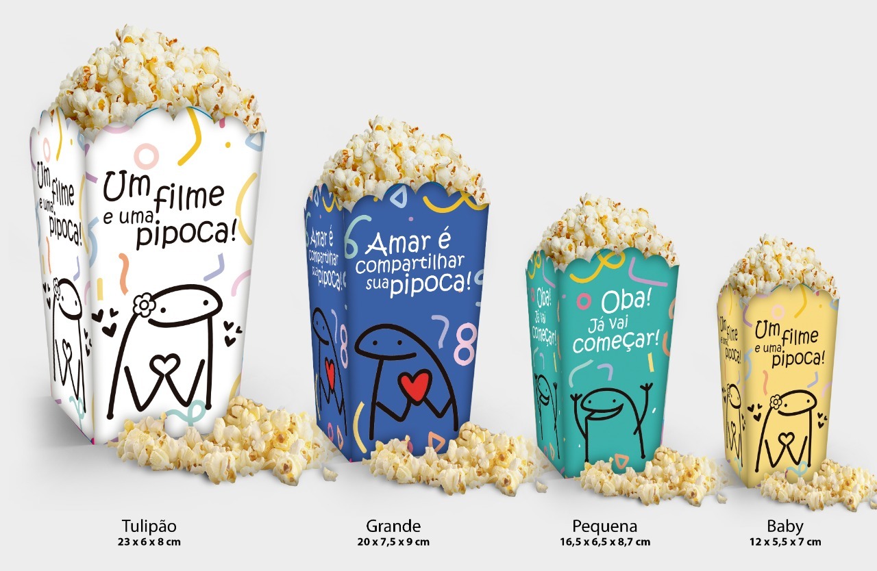 Caixinha temática para pipoca com layout retrô inspirando recordação e emoção!