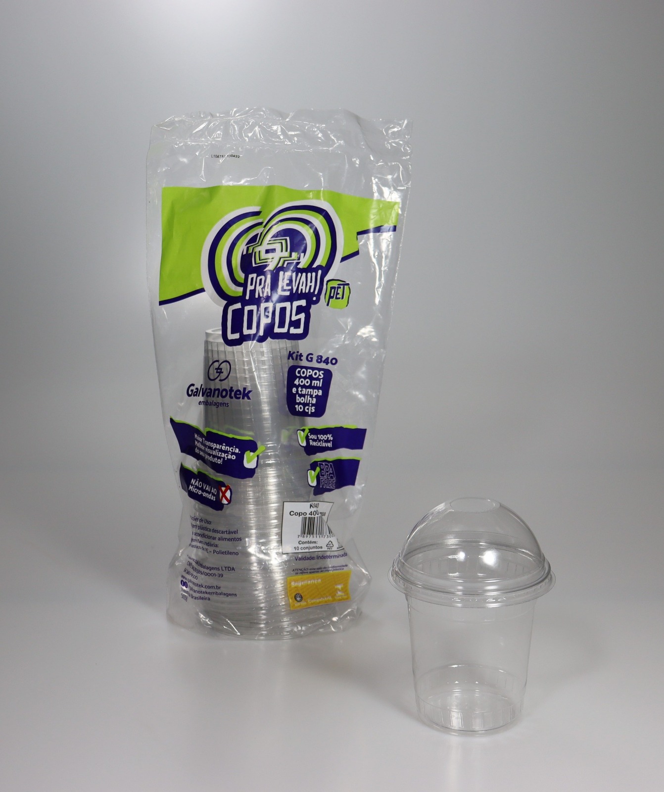 Em sintonia com a natureza, trata-se de um produto reciclável e reutilizável. A tampa bolha possibilita aumentar o espaço interno, para completar o copo com chantilly, cremes e coberturas. Venda em