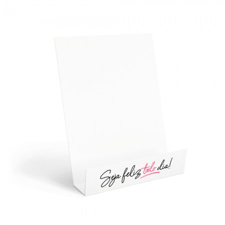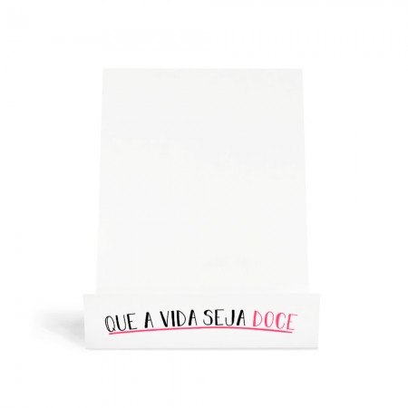 Esta base é feita em papel cartão branco e enviada aberta – para usar é necessário dobrá-la, um processo simples e rápido. Ao dobrar, fica destacada a frase, de acordo com o modelo que você escolher. Estão disponíveis 4 opções de estampa: branca/lisa, e com as frases “Queira o bem, plante o bem, o resto vem”, “Que a vida seja doce”, “Seja feliz”.