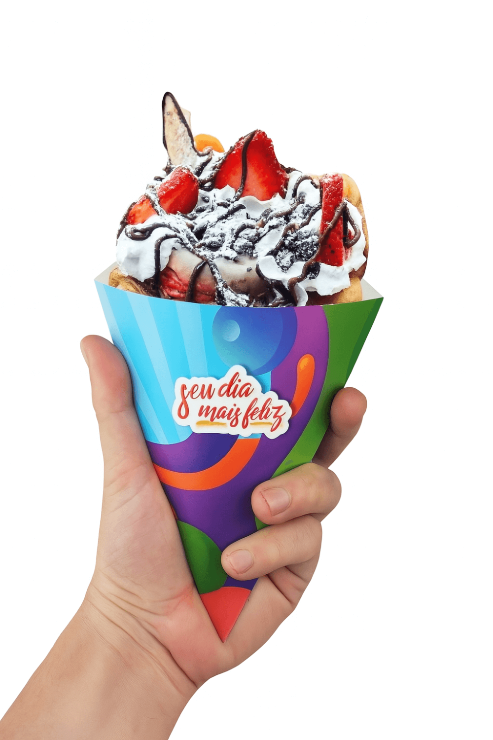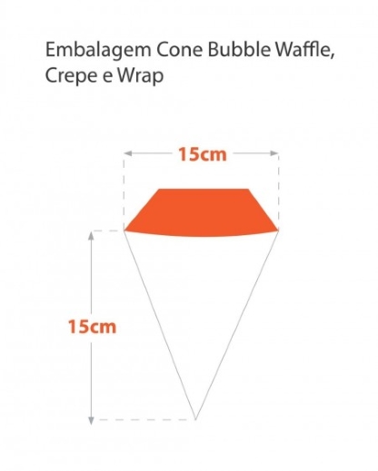 Embalagem tipo cone, feita de papel cartão, para colocar porções, bubble waffle, crepe, wrap e diveros tipos de alimentos.