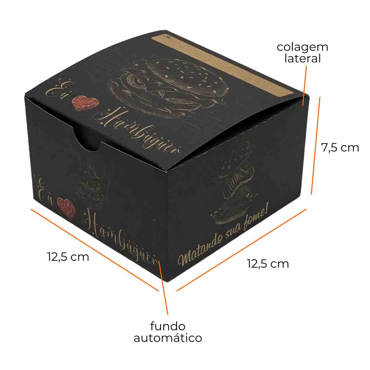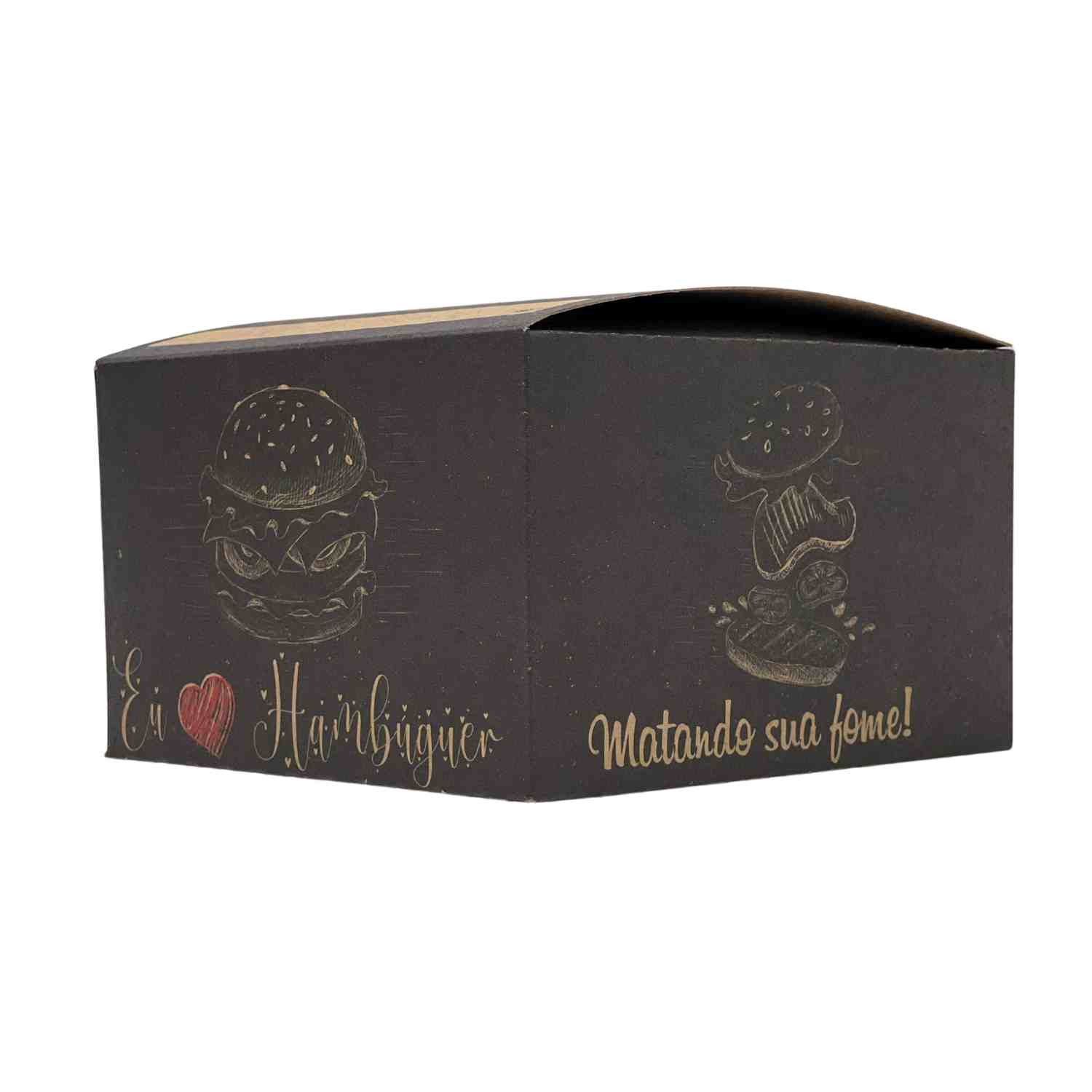 Praticidade e beleza são sinônimos dessa caixa. Ela é ideal para lanches, para hambúrguer e outros tipos de alimento. É fabricada em papel cartão triplex 300 gramas, próprio para estar em contato com a comida. Possui impressão de alta qualidade, com tinta atóxica.