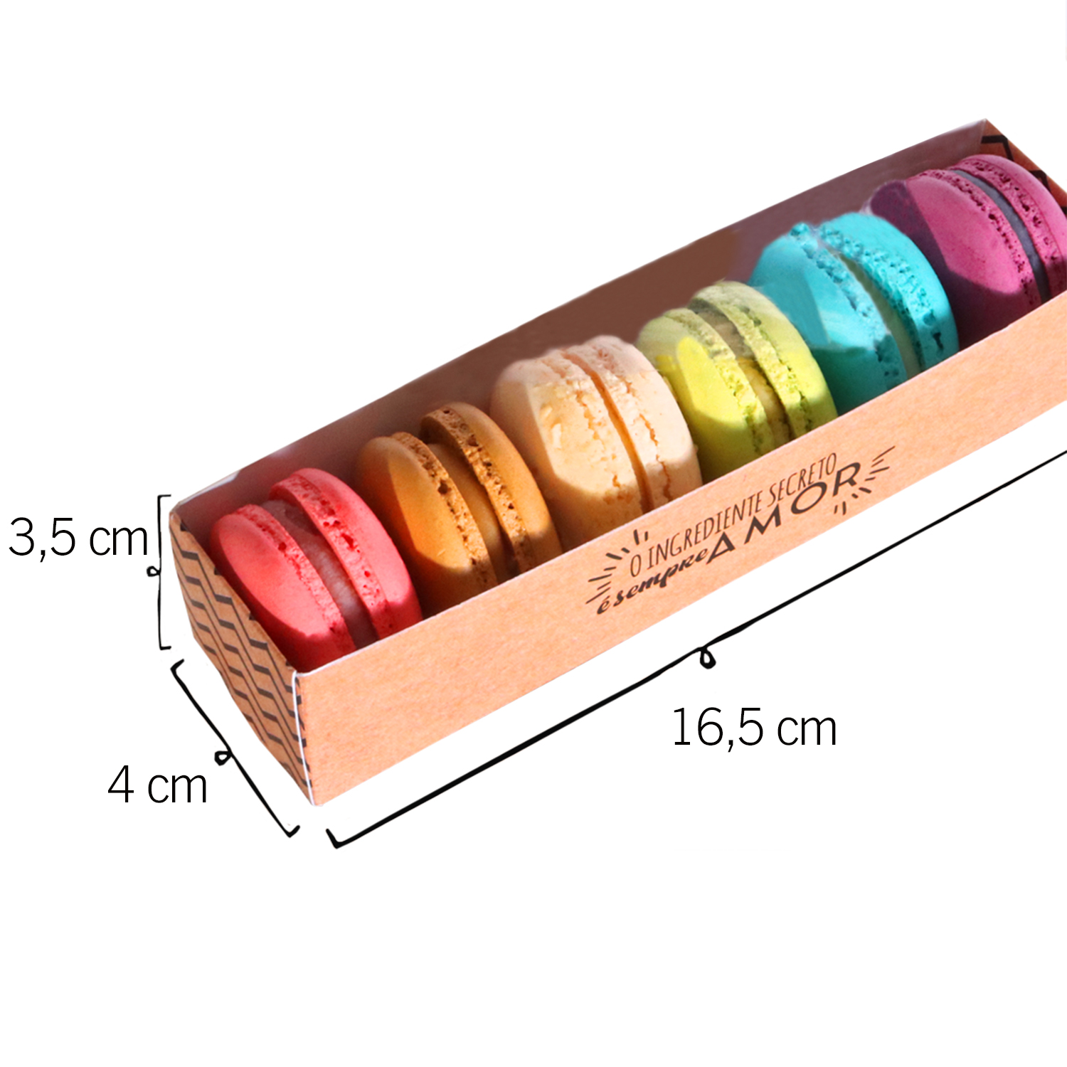 Embalagem ideal para Macarrons, cabem 8 bolachinhas de 4 x 1,6 cm cada
