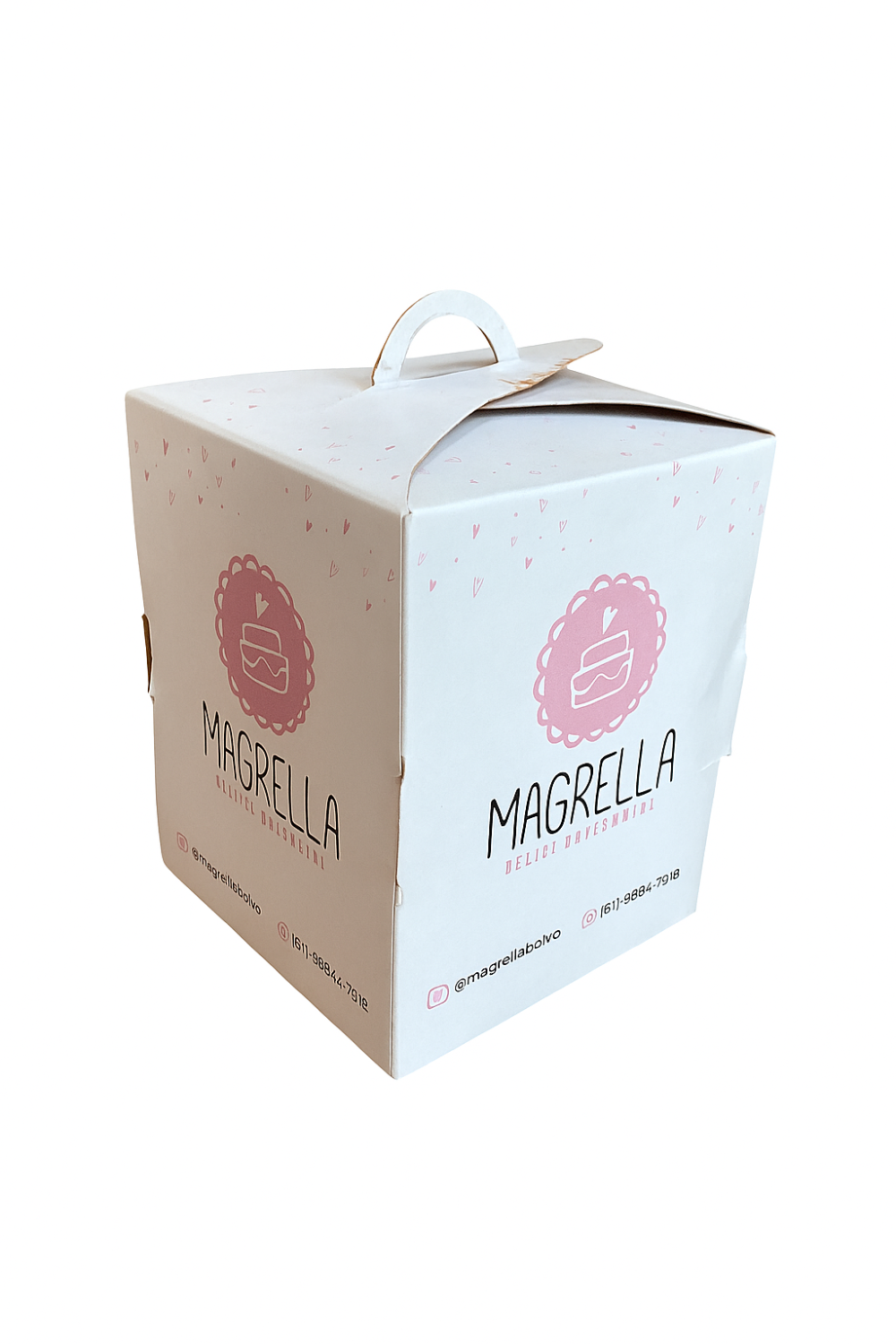 Caixa c/ Alça para Mini Bolo (8 x 8 x 10 cm) Personalizada