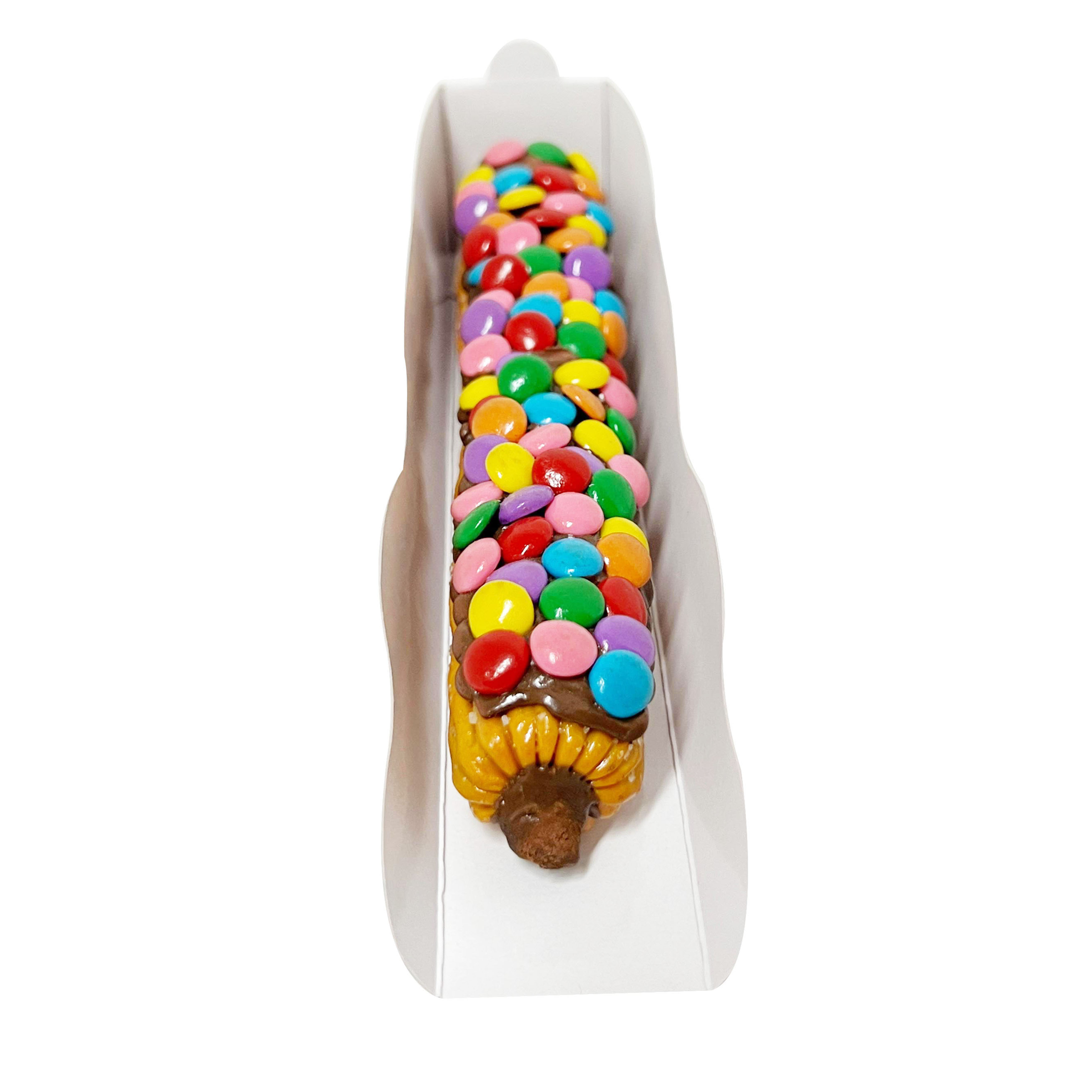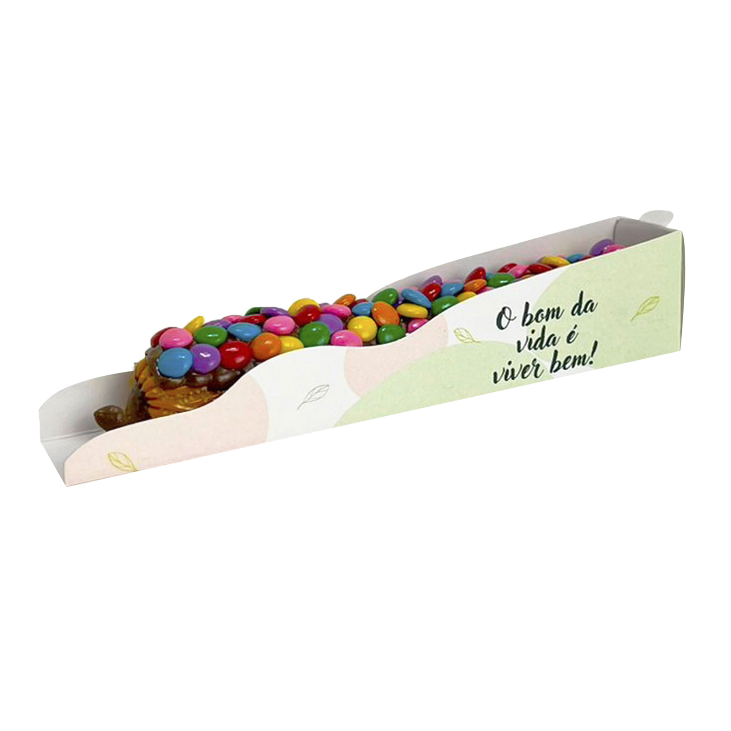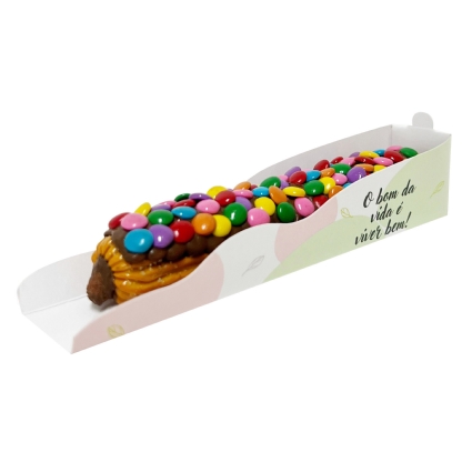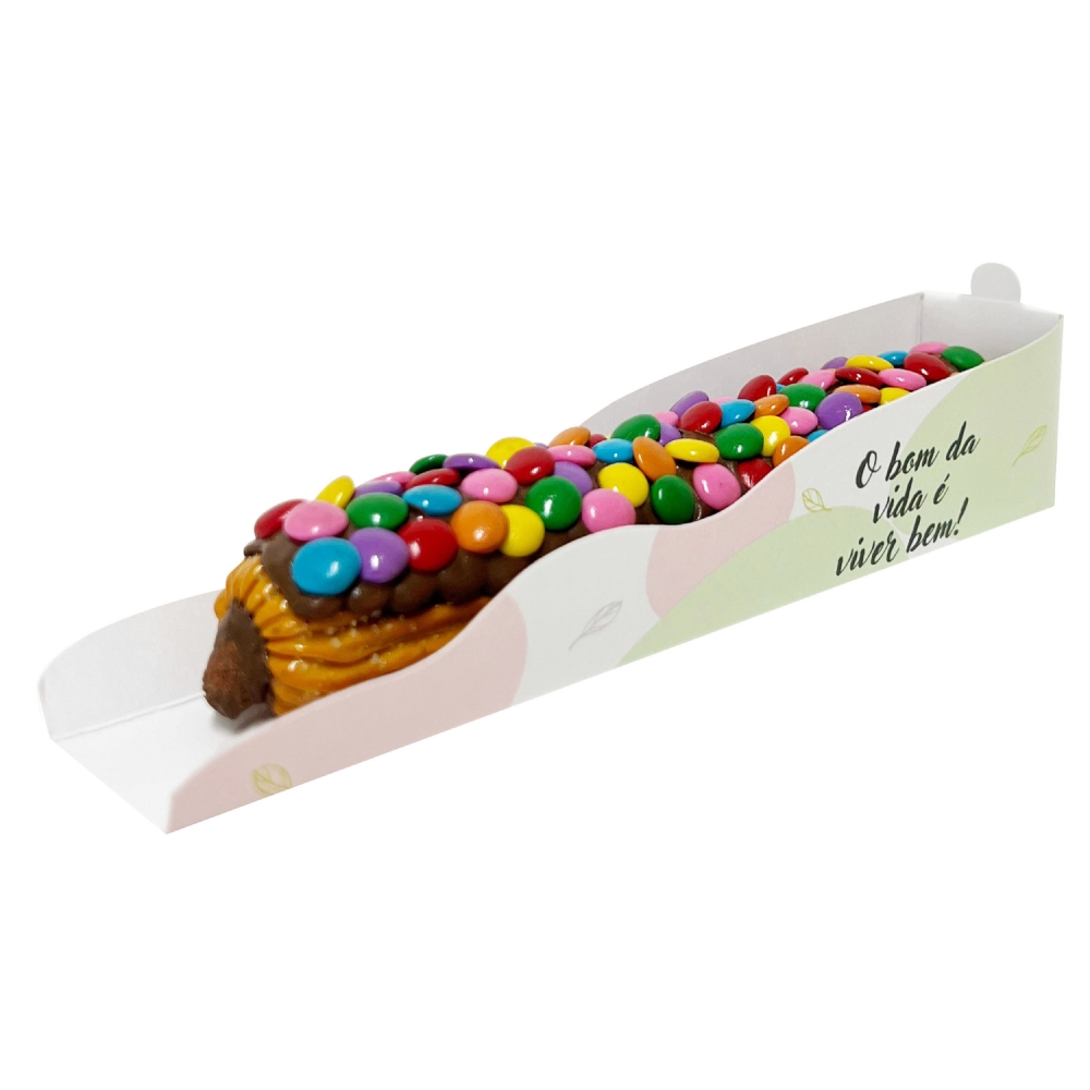 Base suporte para churros. Embalagem de papel, estampada, ideal para segurar e servir churros tradicionais ou gourmet.