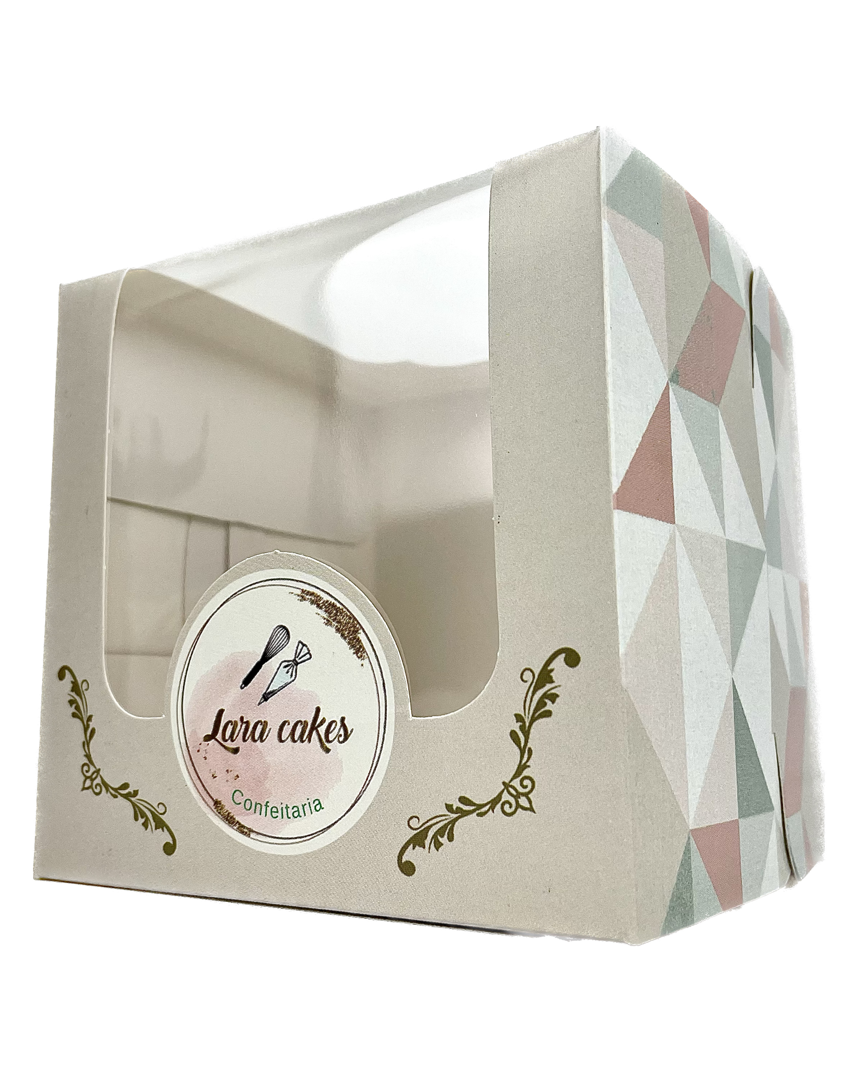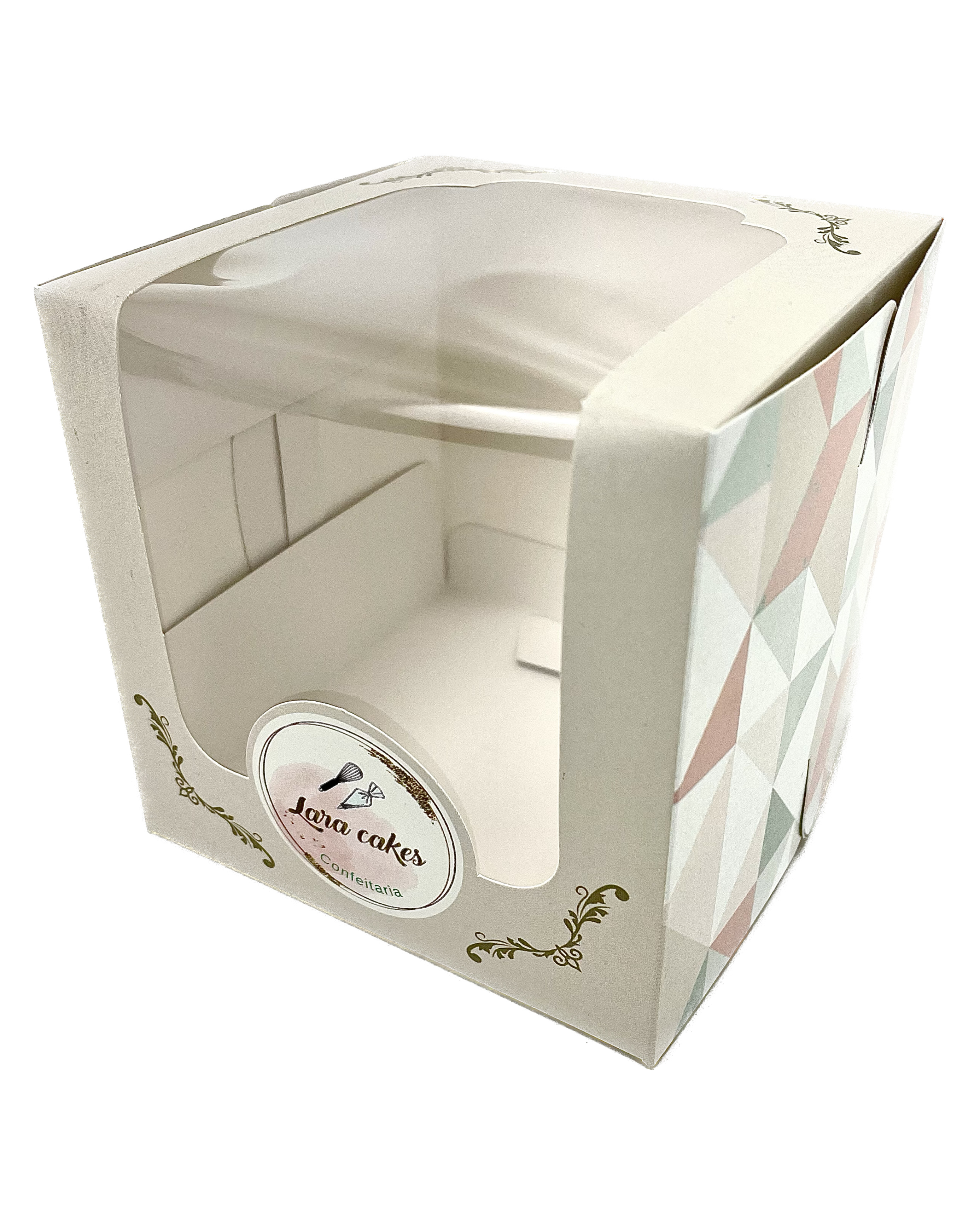 Embalagem Para Mini Bolo, Cakes, c/ Visor Vazado (11 x 11 x 11 cm) Personalizado