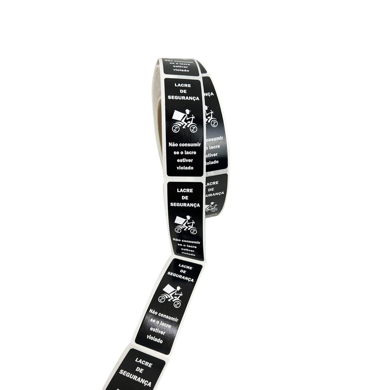 Lacre de segurança adesivo feito em papel couchê. Rolo vem com 1 mil unidades. Frase: “Lacre de segurança – Não consumir se o lacre estiver violado”. Disponível na cor preta e na cor vermelha.