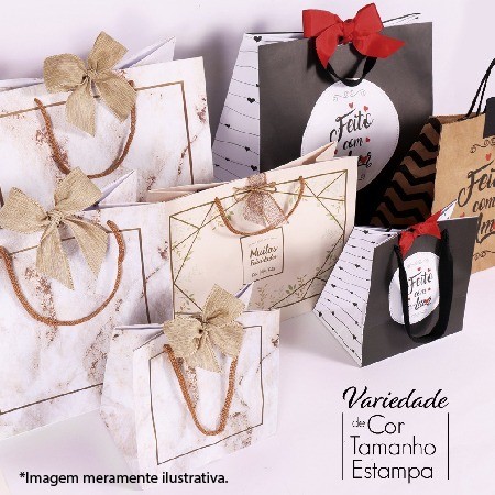 Estampada na frente e nas laterais, a sacola tem um design elegante a arrojado. Traz sofisticação para as vendas e demonstra o carinho com os clientes. A alça preta dá um toque de beleza e personalidade.