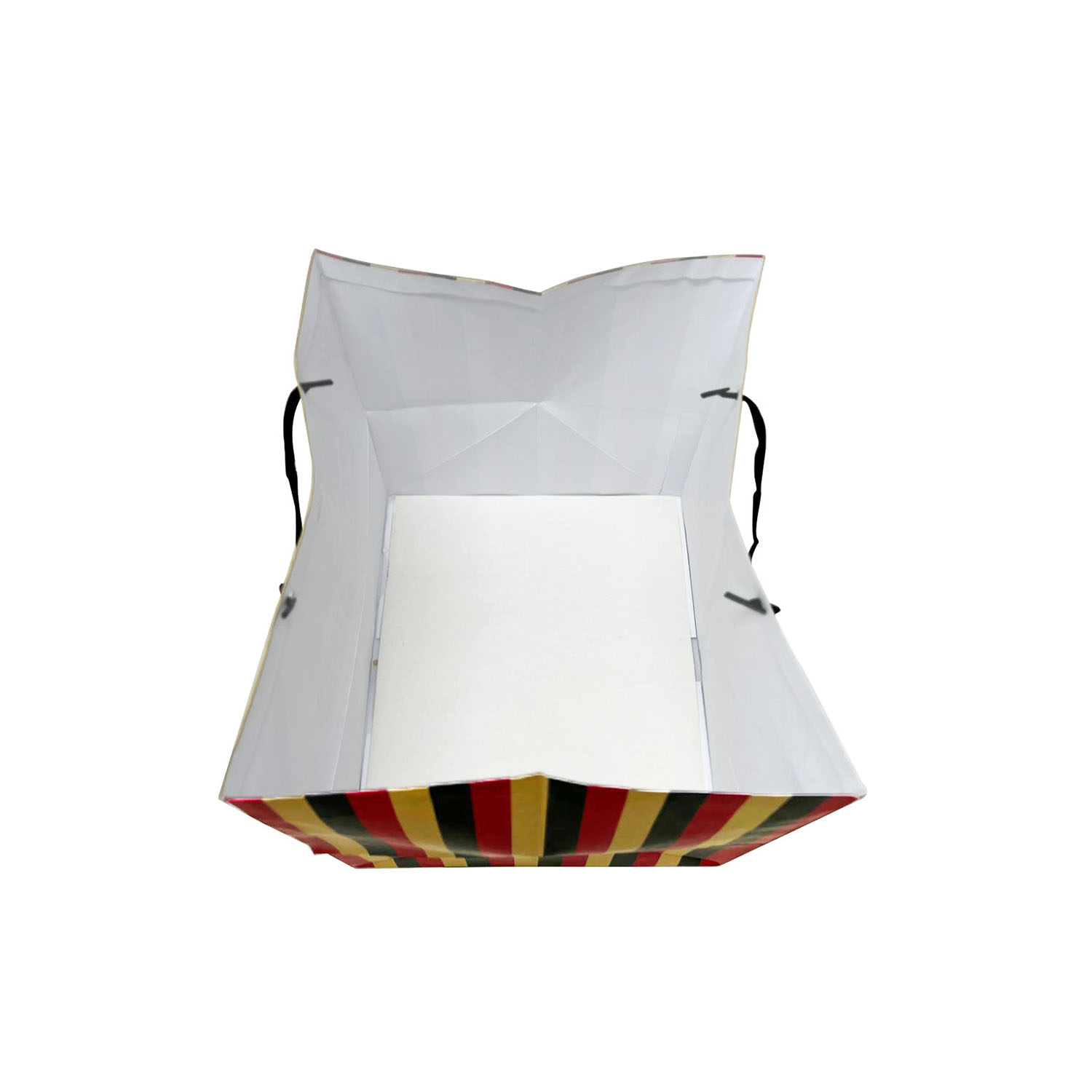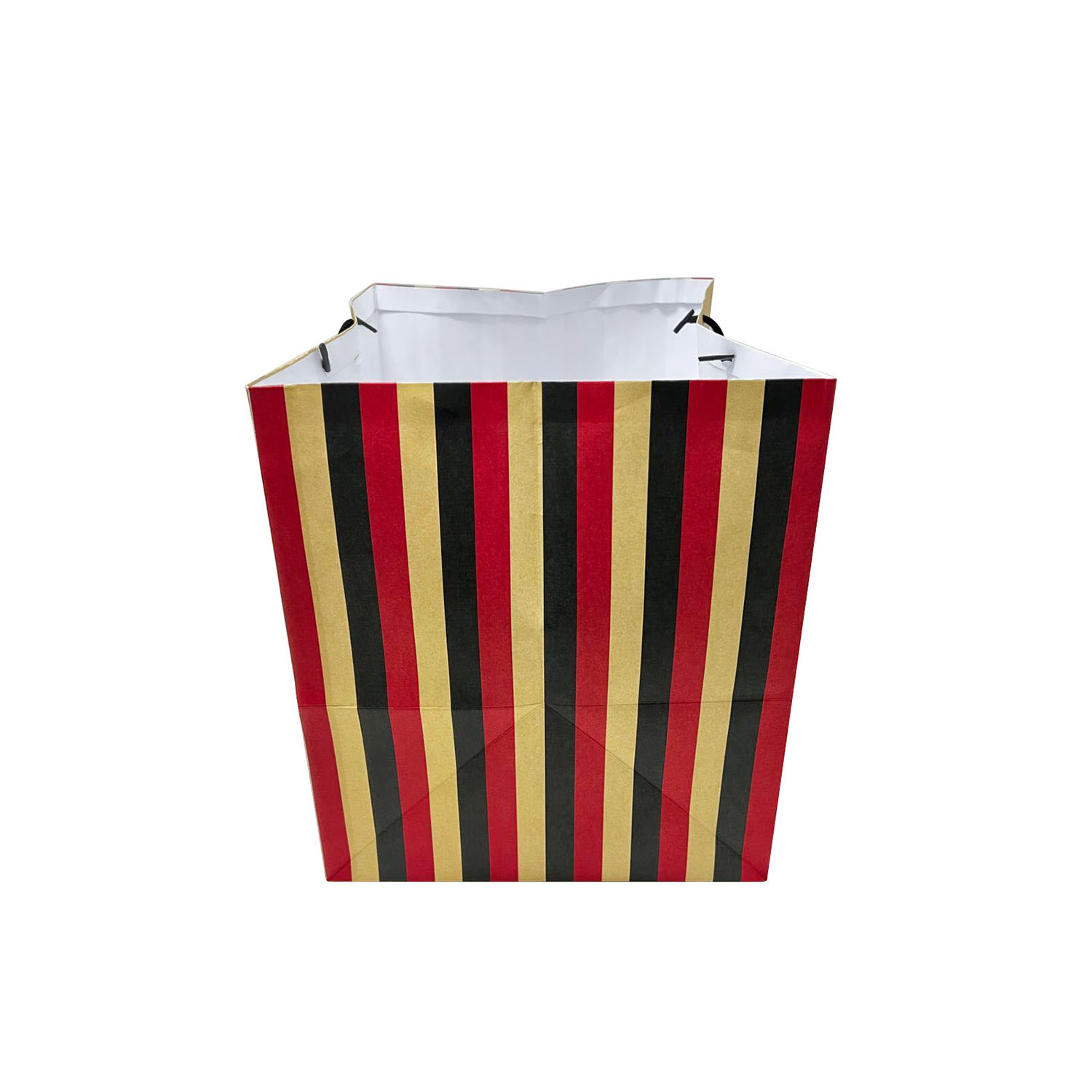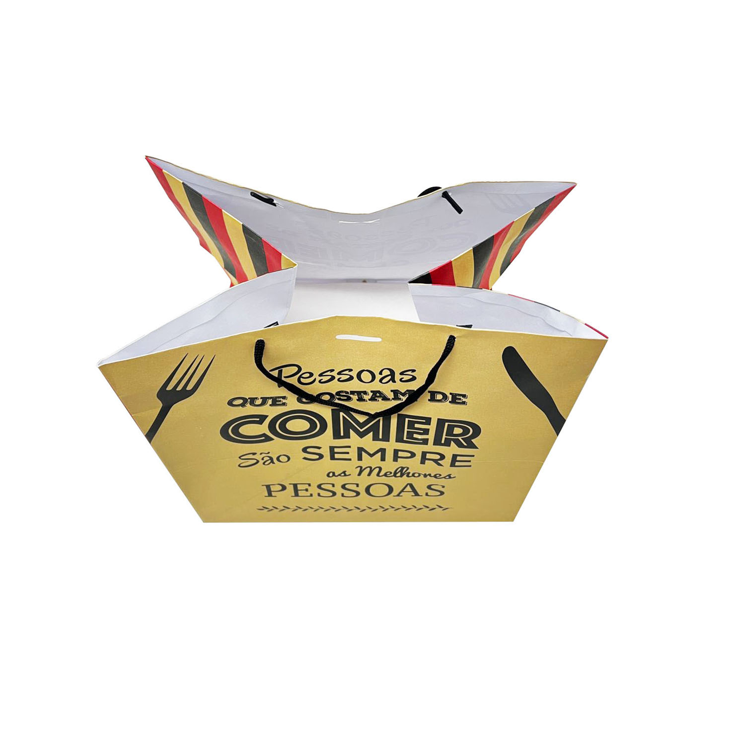 Sacola fabricada papel offset 150 gramas, alça torcida de papel na cor vermelha.